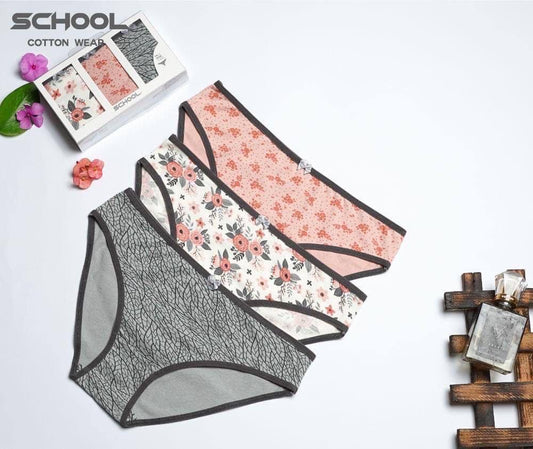 سكول اندرات حريمي بريف استيك عريض منقوش باك 3